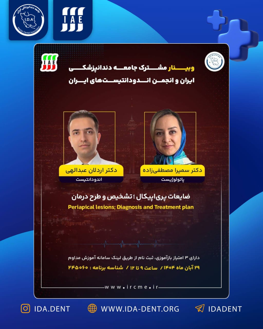وبینار مشترک جامعه دندانپزشکی ایران و انجمن اندودانتیستهای ایران با موضوع ضایعات پری اپیکال، تشخیص و طرح درمان