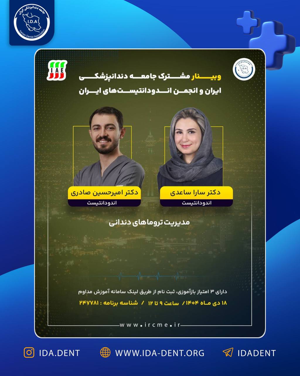 وبینار مشترک جامعه دندانپزشکی ایران و انجمن اندودانتیستهای ایران با موضوع مدیریت تروماهای دندانی
