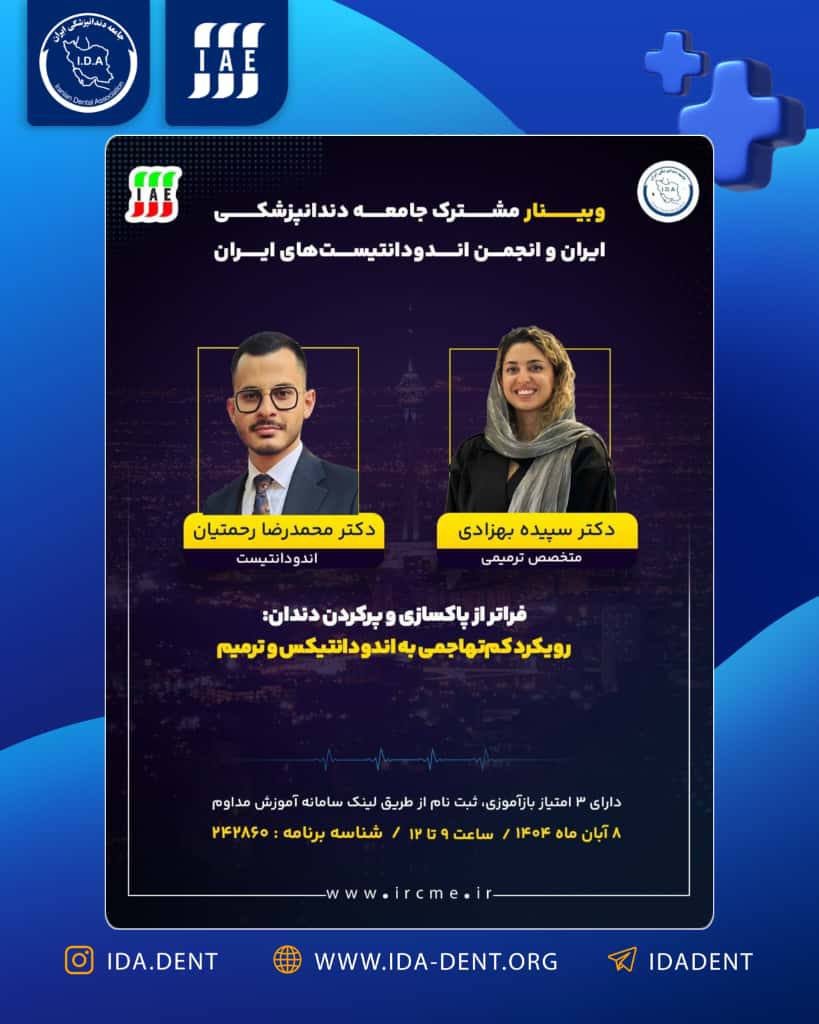 وبینار مشترک جامعه دندانپزشکی ایران و انجمن اندودانتیستهای ایران با موضوع رویکرد کم تهاجمی به اندودانتیکس و ترمیم