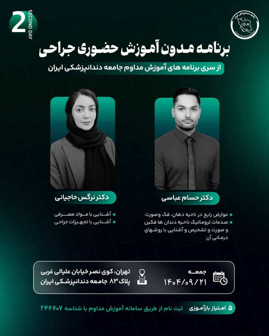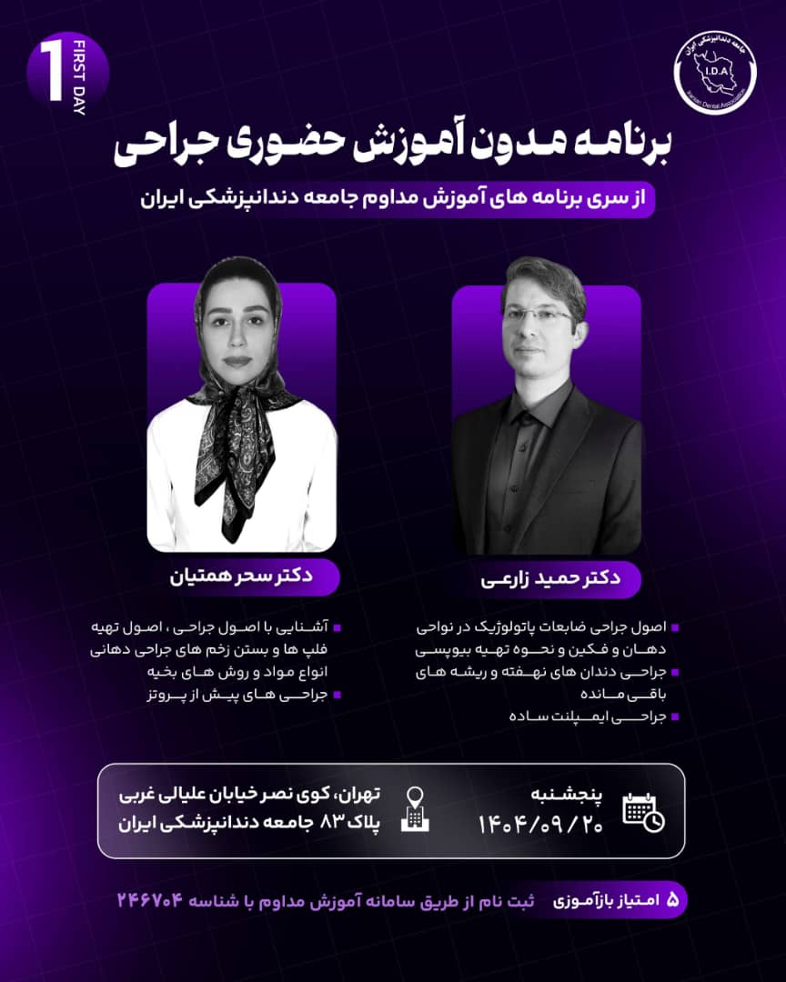 22 اکتبر 2025 وبینار مشترک جامعه دندانپزشکی ایران و انجمن اندودانتیستهای ایران با موضوع مدیریت اندودانتیک دندانهای دائمی تروماتیزه